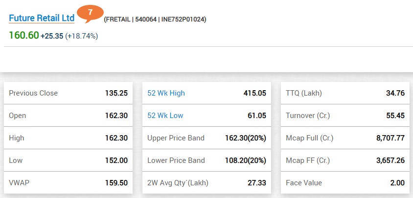 10:14 AM फ्यूचर रिटेल के शेयर में 19 फीसदी तक की बढ़त है।